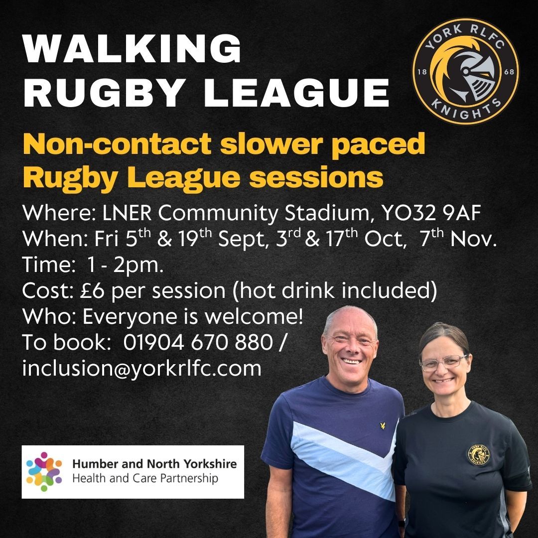 York Knights rugby league club is offering tasters for walking rugby to our branch members. The initiative via the club’s charitable foundation is aimed at establishing regular sessions through the year.